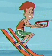 Eugene[1] is one of the kids who Jake is in charge of at Camp Mugwormp. Along with the rest of the kids in his cabin, Eugene is a reject who is "afraid of everything". Initially, he lacks any ability to participate in sports, but after Jake's training, he excels in running and water skiing. He sprains his ankle during practice, but Jake refuses to back down because he wanted to win the Mugwormp cup. Eugene and the rest of cabin nine put up a good match against cabin six, the cabin led by Brad. When Eugene is about to run on his sprained ankle, Jake remembers how he had previously sprained his own ankle during childhoos and pulls him out of the race. Eugene and the rest of the cabin are seen at the end of the episode rowing a canoe to fish out Jake, Trixie, Spud and cabin six from the lake.