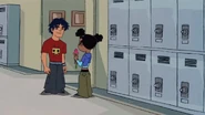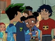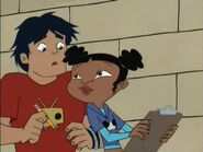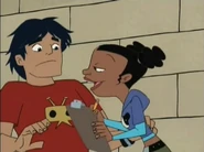 Initially, Kyle did not seem interested in Trixie[5]. However, later he invited her on the school's love cruise[6]. A positive hint he was attracted to her. However, during cruise he was a bit put off by her throwing up on him, prompting him to invite Stacey Wintergrin instead. Trixie retaliated by using one of Cupid's arrows on Kyle to force him to fall back in love with her. Which indicates he might not have been interested in her to the degree she wanted from the very beginning, as the arrow would have had the opposite effect, instilling a strong dislike against her. Kyle was later returned to normal when Trixie used a second arrow on him to restore his true feelings.